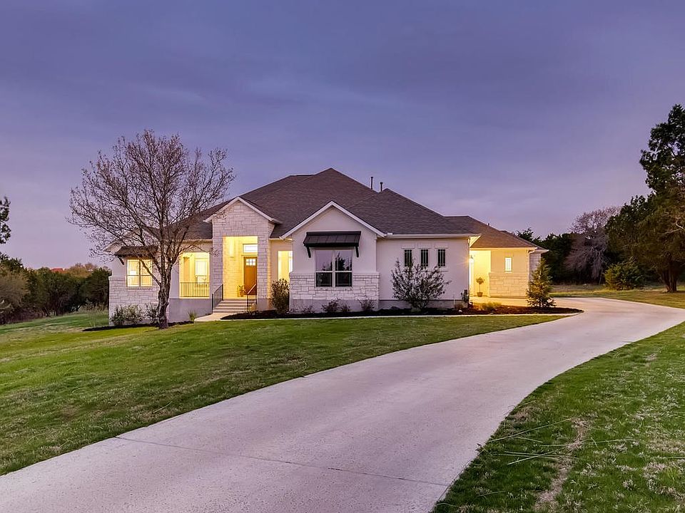 Enjoy the luxury of this gorgeous custom 5/4/3 estate*Nestled on the hill and tucked away for privacy*This coveted Ranch house sits atop 3+ partially wooded acres*Warmth and elegance abound with 14ft high ceilings, hand scraped wood floors & a Sub-Zero Fridge*Vintage chandeliers cast a soothing glow* Open floor plan accentuates clean lines, cool colors, and gives you that artsy, country feel*Unwind in the library, mingle in the kitchen or relax on the porch and watch the wildlife*This home affords it all!