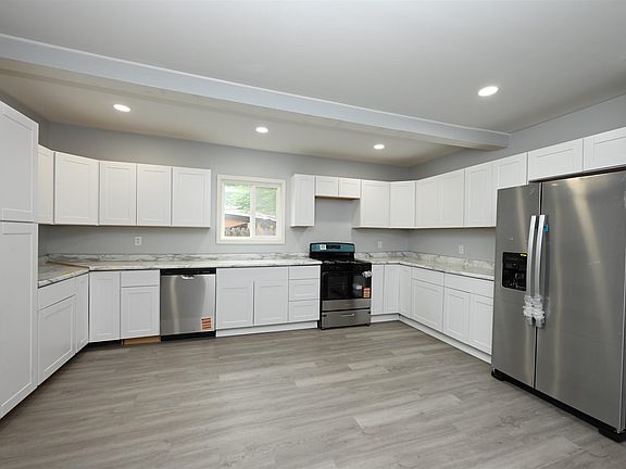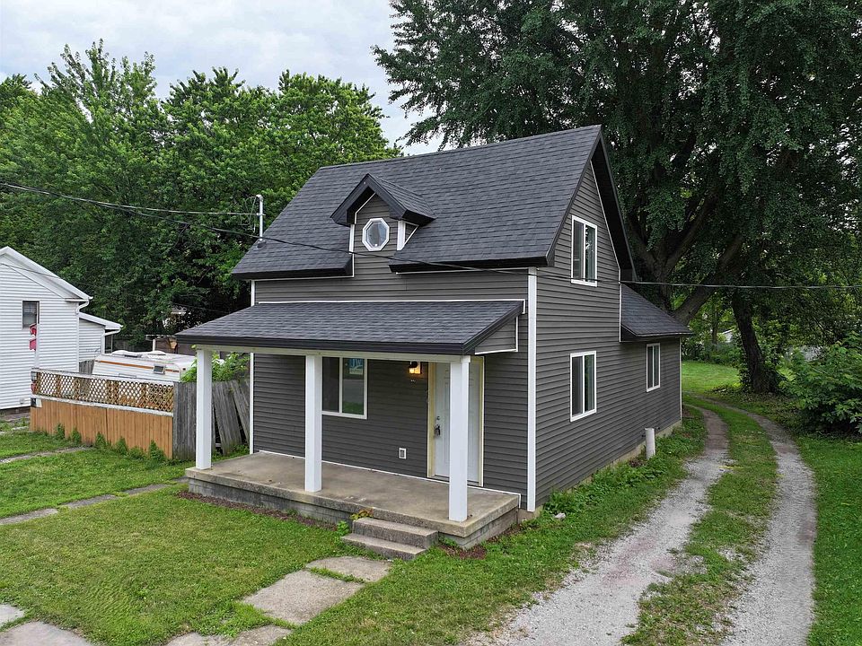 This beautifully renovated residence boasts three bedrooms and a spacious open-concept kitchen and living area. Designed for minimal upkeep, it is fully equipped with new features, including vinyl flooring, carpeting, a furnace, air conditioning, a bathroom, kitchen cabinets and appliances, windows, and a roof. On the main floor, you'll find all the essentials: a bedroom, a bathroom, a laundry area, a living room, and a kitchen enhanced with modern gray cabinets, white countertops, and stainless steel appliances. Upstairs, two additional roomy bedrooms await, each offering generous closet space. Additional highlights include a covered front porch with views of Clear Lake, a partial basement, and a spacious, shaded backyard. This home is conveniently situated near Fox Park and shopping areas. Finishing touches to the home are still being made but will be completed prior to closing. Call today to arrange a showing at this beautiful property!
