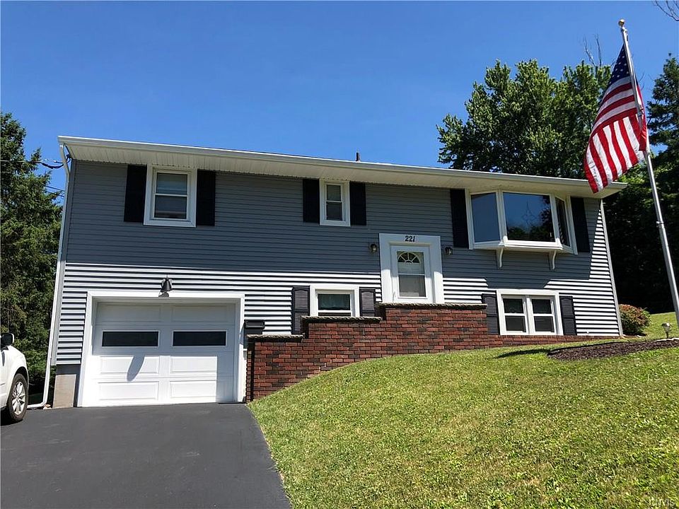 Absolutely adorable best describes this Lovely Raised Ranch. New Roof,Siding,Windows,Deck,Pavilion, Shed & patio all Situated on a Beautiful piece of property . The 1st floor offers 2 bedrooms with hard wood floors through out. Large kitchen with center island granite top, breakfast bar & French door leads to the gorgeous deck. Formal dining room and front living room. New full bath complete the 1st floor. The finished basement is perfect for another family room or entertainment room . Custom bar for friends & family to gather. Laundry with 1/2 bath and access to the 1 car attached garage with plenty of storage finish the lower level. Move right into this beauty! The exterior is beautiful with the mature landscaping, large dbl driveway all maintenance free. A must see.