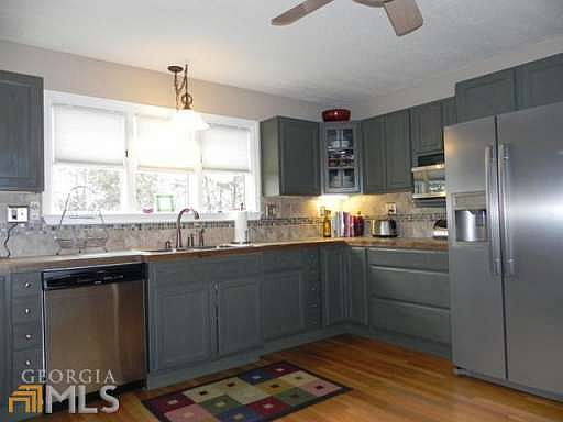 EXCELLENT HOME WITH ACREAGE IN NORTH HABERSHAM - 5-bedroom, 3-bath home out in the country, but convenient to everything! Completely private and landscaped, you'll love the trails cut through the massive grove of mountain laurel surrounding this property. Gorgeous chef's kitchen with pantry, laundry room, separate dining room with double-sided fireplace to the large living room, master bedroom and two more bedrooms all on the expansive main level. Wood floors throughout the living areas, tile-floored bathrooms, carpeted bedrooms. Finished basement features two more bedrooms, one large enough for rec room if needed, and a full bath. Tuck-under 3-car garage has a nice workshop area, mechanical, and entry. Awesome fenced dog run with a great yard!