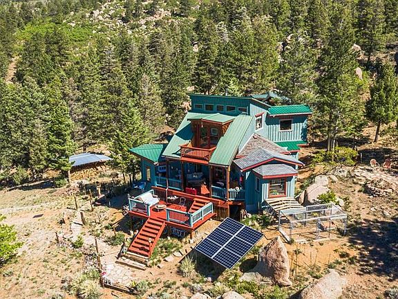 It's always time to relax when you're at this charming mountain home. The sounds of birds and wildlife, 180 degree mountain vistas, and the beauty of nature set the mood -- it's time to kick off your shoes, prep a beverage and enjoy the outdoors from one of your 2 sunny private decks, including one on the second story for even better views! Afterwards treat yourself to a spa day with your very own sauna as well! Located within 45 minutes of Salida, this home has 7.3 acres, and is a prime location for fishing, hunting, hiking, cross country skiing, or any of your favorite country pursuits. Forest Service trails are practically out your back door. The guest quarters has a 1 bedroom loft, plus an attached greenhouse. It is off grid, with a new solar system that will run everything you need. With plenty of room for storage from the garage, to a workshop, to multiple sheds for wood, tools, or toys, you will never need anywhere else. Want a private getaway for the weekend? The summer? Want a vacation rental? Want to escape the crowds completely? Look no further. Welcome home.