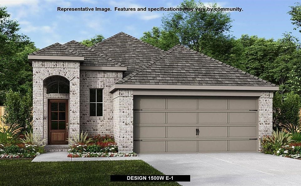 Entry leads to open kitchen, dining area and family room. Abundant natural light and 10-foot ceilings throughout. Kitchen features large walk-in pantry and generous island with built-in seating space. Family room features wall of windows. Primary suite includes bedroom with 10-foot ceiling. Double doors lead to primary bath with dual vanity, separate glass-enclosed shower and large walk-in closet. Secondary bedrooms feature walk-in closets. Covered backyard patio. Utility room leads to two-car garage.