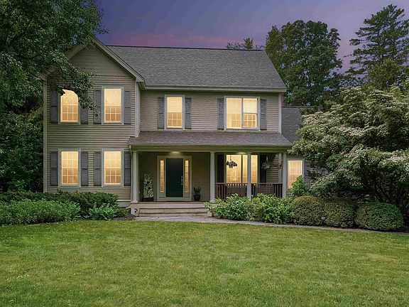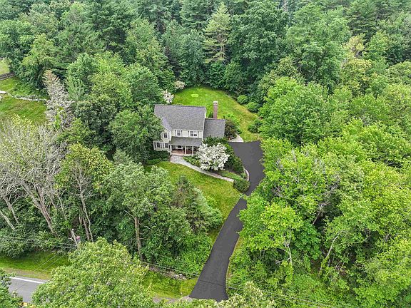 This home is set back from the road on a 3.9 acre lot, screened by dense planting & surrounded by woods offering river frontage. This 4 bedroom colonial home has been well maintained & enhanced w/ beautiful stone walls, paved patio areas & walkways set against lovely mature landscaping & perennial gardens. The outdoor space includes river frontage, trails that lead to conservation property for hiking & biking, a dedicated paved patio wired for a hot tub, a fire pit & a covered open porch overlooking the yard -perfect for entertaining. The deck contains a bump out for a grill plumbed for propane plus a shed & chicken coop on the property. The interior offers a large kitchen w/ eating area, family room w/ lots of light,wood burning fireplace & cathedral ceilings. 1st floor also offers formal dining room, living room, office, separate laundry w/ hard wood floors. On 2nd floor is the primary suite w/ a walk-in closet, bathroom, 3 additional bedrooms, a full bathroom & large foyer w/ hard wood floors. 3rd floor has been finished providing additional space for guest room, work-out area, media room or office, offering a large storage closet. Recent updates include HVAC, roof & driveway refurbished. Central air, irrigation system, central vacuum & underground dog fencing. This beautiful house is move in ready for its new owners! The town of Newfields offers SAU#16 schools, is close to UNH, downtown Exeter, Portsmouth, seacoast beaches & highways for commuting.