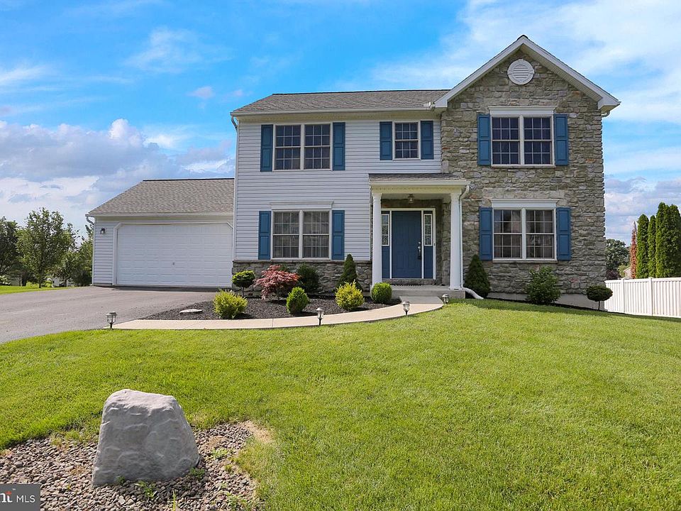 221 Pond View is a real nice home that is located in a very nice development. It has 4 bedrooms and 2.5 baths. The master suite is large and has 2 walk-in closets, and a full bath with a jetted tub, show and double vanity. The kitchen has a tile floor, center island and plenty of cabinet space and a pantry. There is room for a breakfast table and chairs where the sliding glass door is to the large outdoor Trek deck. The first floor also includes the living room, family room, dining room and laundry. The 2 car garage is painted white and there is plenty of room for large cars. The basement if finished and just newly painted and has a tile floor.