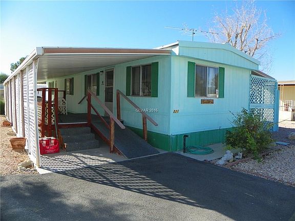This 784 square foot mobile / manufactured home has 2 bedrooms and 1.0 bathrooms. This home is located at 221 Powderhorn Ave, Overton, NV 89040.