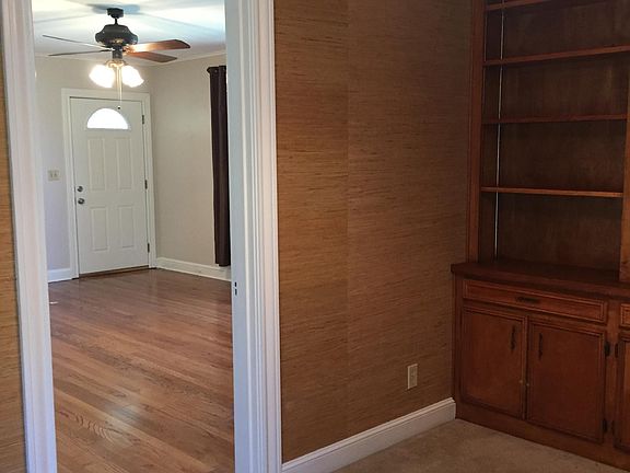 This cottage is in the heart of desirable Broadmoor subdivision. 2/1 with large kitchen-space for bistro table. Also has formal dining room. Lovely study off the living room with french doors to side deck. Laundry hook-ups adjacent to kitchen with extra storage and bonus room for computer or work area. Ceiling fans in both bedrooms and living room. House is insulated in attic and under flooring for reduced utilities. Original hardwood flooring was refinished 3 years ago and carpet is in the bedrooms. No refrigerator provided. Covered parking in detached garage. Tenant responsible for regular yard maintenance. Tenant pays gas, water and electricity. Owner uses the garage apartment for personal storage.