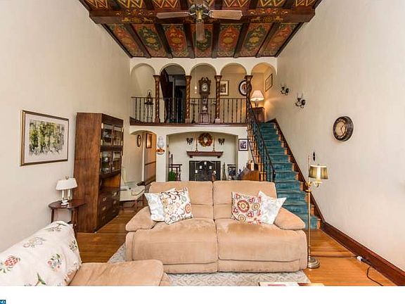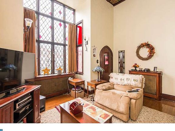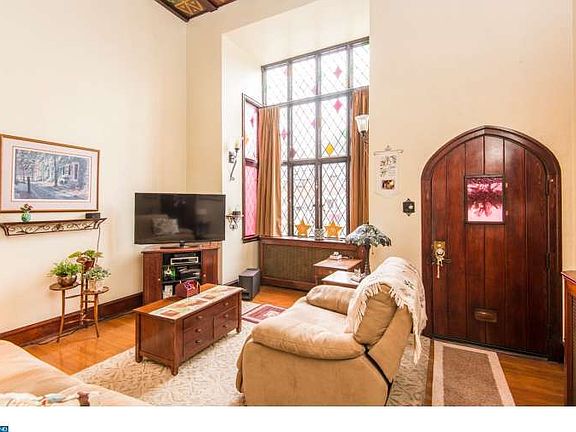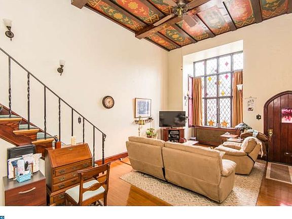 Amazing opportunity to own a home with lots of architectural detail! From the front flagstone patio, enter into this beautiful stone exterior home with high ceilings and incredible stained glass windows. Features include working fireplace with a cozy sitting area, beautiful classic millwork throughout, and an amazing wood crafted ceiling. The first floor also has a large dining room with built-in corner cabinet and a fully equipped kitchen with ceramic tiled floor and access to the back. The second floor has a large master bedroom and bath with stall shower and tub. Third floor offers two nice size bedrooms and half bath. The full basement can easily be finished and has laundry as well as access to the 1 car garage. Conveniently located close to transportation, shopping center and restaurants.