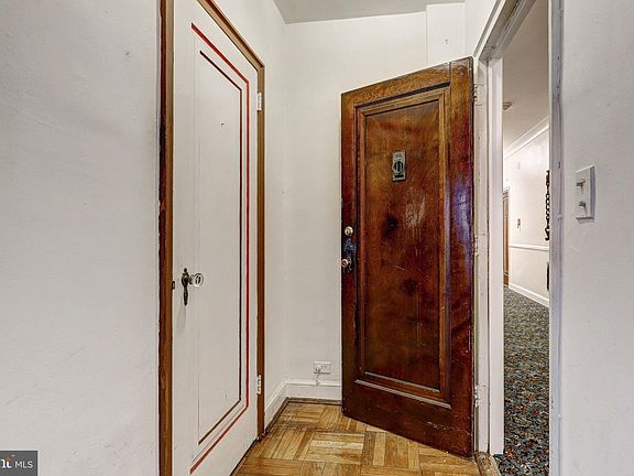 The hallmark of this building includes a steeply pitched gable roof, brick exterior with hand-hewn half timbering, masonry and stonework. Tudor England nestled nicely in Roland Park right next to Stoney Run, the woodland trail that follows a steam energetically rippling over rocks and under a walking bridge. Watch spring break forth from the 12x7 balcony. The well thought out floor plan is designed to maximize the space, making the unit feel larger than its 838 square feet. Parquet floors throughout. Primary bedroom has two walk-in closets. Replacement windows. Main entrance to the building is on the third floor, so unit 303 is just steps away from the lobby and the mail slots. Secure 10x5 storage locker is up a set of stairs off the 5th floor and the laundry and trash facilities are on the lowest level. Charles Village, Cross Keys, Mt Washington, Johns Hopkins University, Loyola University and Notre Dame of Maryland University are a few of the neighbors. Estate sale, being sold "AS IS". Needs work..