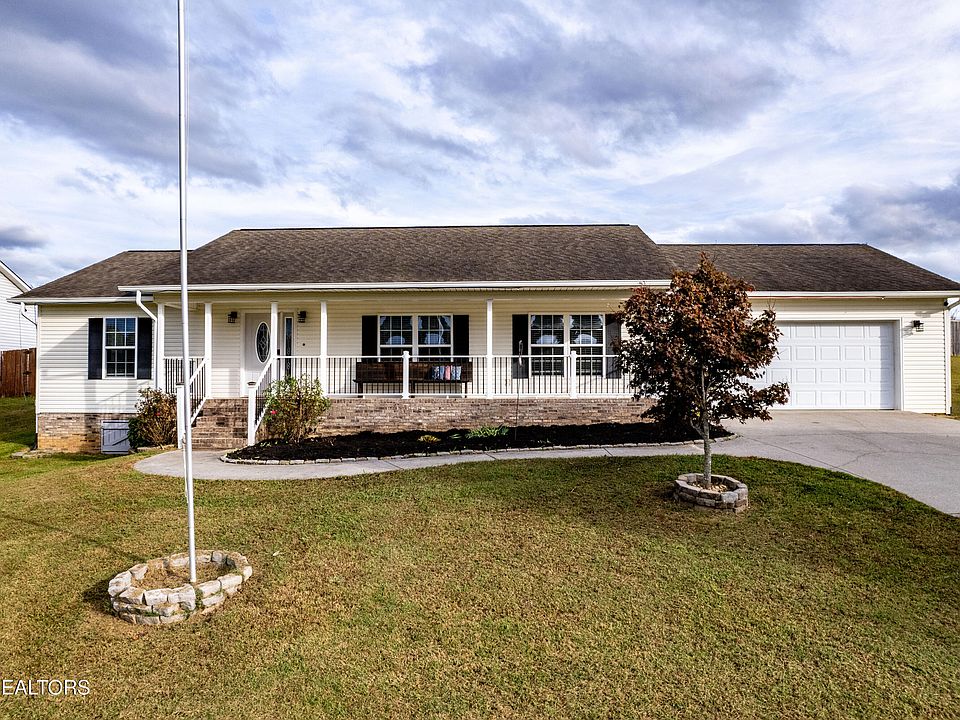 This gorgeous family home is all on one level, with mountain views and half an acre of property. Enjoy county only taxes and no HOA, yet you are only 15 minutes from downtown Maryville with abundant shops and restaurants, and 22 minutes from the Great Smoky Mountains National Park with its hiking trails and the Little River. You truly have the best of both worlds! As you step through your front door you are welcomed by gleaming hardwood floors, trey ceilings and an open, split bedroom floor plan. The dining room opens out onto a large back deck and there is a fire pit for those cozy Fall evenings. The kitchen has a pantry and a breakfast bar, and connects to a full laundry and a 2 car garage. The garage has been converted to living space but can easily be converted back to a garage if you prefer. The master bedroom has a walk in closet and en suite bathroom, and all the bedrooms are a good size with spacious closets. In the spring time, you will be surprised by the flowers already planted for you in the front flower beds. Schedule your private showing today, or visit one of our Open Houses scheduled for your convenience.