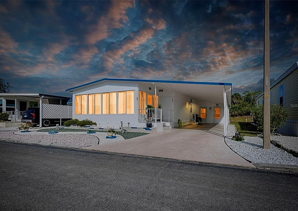 PRICE ADJUSTMENT Charming Furnished 2 bedroom, 2 bath boasting new floors and freshly painted walls. Master bathroom with ensuite bathroom. Upgraded Florida room a perfect spot for relaxing or entertaining guests. Many updates make this home move in ready. Exterior paint 2020, new electric meter can/150 AMP disconnect 2018, Water heater 2020, Dishwasher 2019, refrigerator 2019. New Air Conditioner 2021, Double Paine Windows added to Florida Room. Roof Over 2004 roof resealed Dec 2023. New sub flooring was added in 2023. New Electric Panel 2022. Enjoy the shed workshop for hobbies and a separate shed for convenient laundry duties. This residence combines modern upgrades with cozy charm ensuring a delightful living experience for those seeking a blend of comfort and functionality. Venice Isle is a premier owned 55+ community with low HOA fees for the fabulous community amenities. Activities galore available to all who are interested in being active, or just lounge by the heated pools and hot tub. The park offers 2 club house, fitness center, tennis courts, a putting green, bocce ball, TV lounge and card room. Just a few minutes to the Gulf Coast beaches and downtown Venice.
