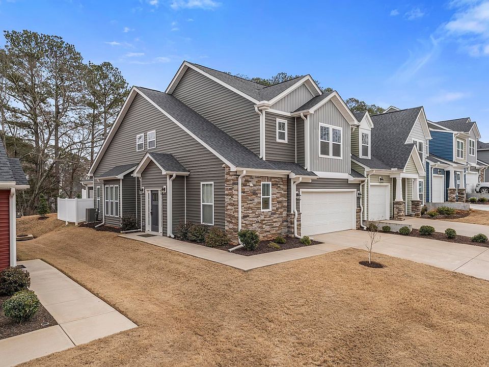 This community is located less than a minute from Smithfield's Country Club and Golf Course. This home embodies luxury, style, and quality craftsmanship. It is an end unit townhome featuring the master bedroom on the main level, a 2-car garage, and 2,370 sq. ft. of living space, ensuring it checks all your boxes. Sheffield Village, where the home is situated, is ideally located in Easley, SC, between Greenville and Clemson, and is just 11 miles from Downtown Greenville! The homeowner, who is a builder, has added several impressive features, including: - A screened back porch - Privacy fencing - A grill pad with a gas stub for the grill - A stunning ceramic tile shower - Shiplap trim details - Sealed garage floor - Additional garage storage shelving **Home Description:** Upon entering through the front door and standing in the foyer, you will immediately notice the incredibly high ceilings throughout the home, with vaulted ceilings in the main living area. The first level features hardwood-style LVT flooring, upgraded cabinets, and an open concept floor plan that seamlessly connects the kitchen and living space, making it perfect for entertaining. The kitchen is truly the focal point, boasting pendant lighting over a spacious island, granite countertops, and upgraded stainless steel appliances. Adjacent to the main living area, you will find the first-floor Primary bedroom and bathroom. The size of the Primary closet, the oversized shower, and the dual vanity are breathtaking. As you ascend the oak wood stairs with open rails, you will be amazed by the expansive loft area and additional bedrooms, as well as the second laundry room and full bathroom. At this point, you may feel confident that this is indeed the home for you! Your new home is perfect for any occasion—whether you're hosting family game nights in the upstairs loft, watching a game in the spacious great room, or relaxing in a rocking chair on the covered porch, you will continuously enjoy the comfort of the Lakehurst home. There is no doubt that your expectations of what a townhome can be will be forever redefined. To schedule an appointment, please contact the homeowner.