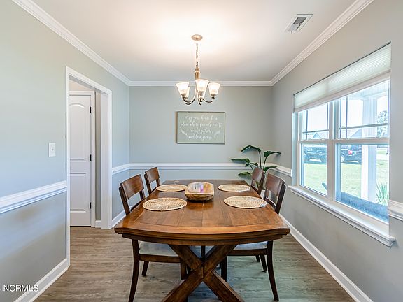 Easy Breezy Floor Plan! Welcome to 221 Rowland Drive with 3 bedrooms, 2.5 bathrooms and a bonus room. The comfortable and inviting living space flows seamlessly from one room to the next. The formal dining room boasts double windows, chair rail and crown moulding, creating a warm and welcoming atmosphere. The open-concept layout seamlessly connects the living room to the kitchen and breakfast area, promoting easy interaction and entertaining. The kitchen provides style and functionality, equipped with modern appliances, ample cabinetry and counter space, and a convenient island. Traveling upstairs you will find brand new plush wall to wall carpeting, dual vanities in the hall bath and custom blinds throughout the home. Retreat to your master suite featuring a trey ceiling and walk-in closet. The master bath is tastefully designed and includes a garden tub, walk-in shower and double vanities. Outside, the property is situated upon a 0.34 acre lot with a wood privacy fenced backyard. The rear patio provides an ideal space for enjoying the beautiful Carolina weather. Located in Bradford Estates, this home enjoys convenient next door access to the community pool. Reach out today to discover all that this property has to offer.