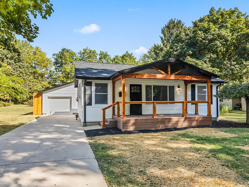 This home is like brand new! Amazing to-the-studs full renovation! The right colors, the right finishes! Welcome to all that small town living has to offer! This is Ingalls! Just 5 minutes from the emerging downtown Fortville and just 10 minutes from I-69. The heart of this home is the open-concept living space including a large galley kitchen designed for both culinary creativity and casual gatherings. It features an island bar peninsula with stone tops and new stainless steel Whirlpool appliances. The open floor plan enhances the sense of space and light throughout kitchen, dining and living area, creating an inviting atmosphere for both relaxation and entertainment. The living space is completed with a dedicated laundry room, 2 cozy bedrooms, a modern tile/glass full bath plus plenty of storage/play space in the bright unfinished full basement/cellar with day windows. Relax througout the day on the brand new covered front porch or oversized rear patio, perfect for entertaining. This cute abode is situated on a generous .43 acre lot across from a wooded lot for added privacy. This one-story post WWII bungalow blends vintage charm with modern convenience. This is an exceptional opportunity to own a charming quality home that promises a comfortable and relaxing at-home environement!
