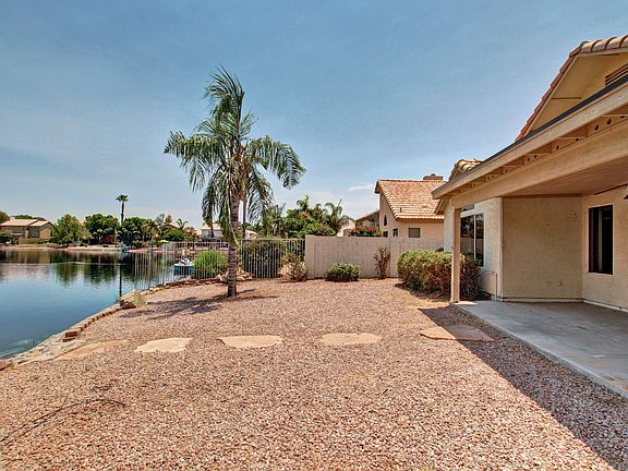 Relax under the covered patio and enjoy waterfront views at this one-story Chandler home! Step inside and you will find new interior paint and vaulted ceilings. The galley, eat-in kitchen features stainless steel appliances, a tile backsplash, and a Bay window in the breakfast nook. The Master bedroom offers a walk-in closet and an ensuite bathroom with a vanity and a step-in shower. Home is located near Monterey Vista Village Shopping Center offering groceries and dining options. Accessible via Santan Fwy. This home comes with a 30-day satisfaction guarantee and one-year premium warranty. Terms and conditions apply. Open House: Mon-Sun, 6am-9pm