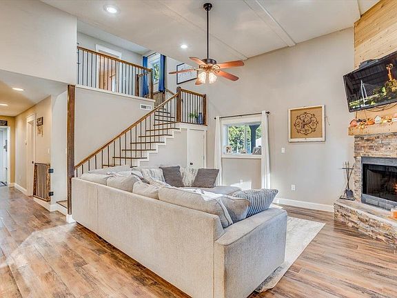 This is your dream country property! A 4 bed, 2 bath barndominium with a 30x40 attached shop area situated on 4.30 acres. As you pull up the drive you will love how far off the road the house is located. Then, you will notice that the entire acreage is filled with trees. As you pull up to the house you will love the wrap around porch featuring a zero entry front door. As you step inside you will walk into a fully open kitchen, dining room, living room area - everyone's dream! Down the hall you will find a full bathroom, 2 bedrooms, and the laundry room. Upstairs features another bedroom plus a large master with a beautiful master bath boasting double sinks, a large walk in shower, and a bath tub! The attached shop area has 200 amp electrical, a sink, cabinets, a loft area, and attic access for extra storage space. Out back you will find an open storage shed with electric. With no neighbors on 3 sides of you, you can enjoy the privacy of the country! Come see this beautiful property for yourself!