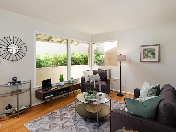 Welcome to this move-in-ready Pasadena home which features a spacious living area, a full bathroom, a spacious kitchen, and newly refinished hardwood floors! This end-unit home is in a great central location with access to many of Pasadena's most well-known restaurants, shops, The Paseo, and the Gold Line Station. This home features large windows which allow for natural light to enter the home and a window AC unit. The kitchen features linoleum vinyl flooring, a tile countertop, a tile backsplash, large cabinets, and kitchen appliances. The hallway offers an abundance of storage space with the sliding door closet and cabinets. The full bathroom features tile floors, a large vanity with tile counters, a built-in desk, and a tub/shower combo with tiling on the wall. The building also conveniently offers a shared laundry room that is available to those who live in the building and the HOA covers all of the utilities including electricity and water. This home is in a great location and has been recently updated. Don't miss the opportunity to call this move-in-ready Pasadena home yours!