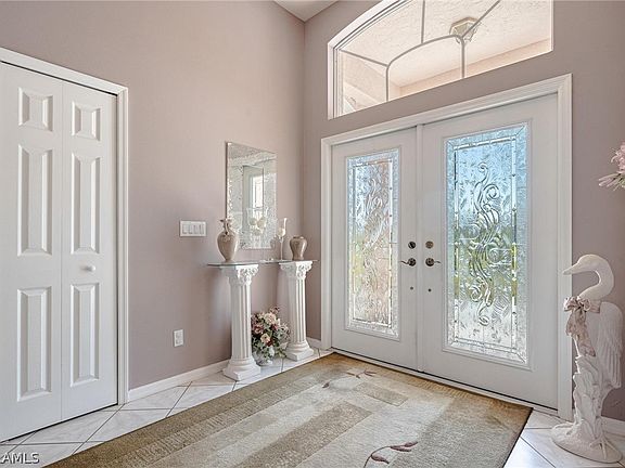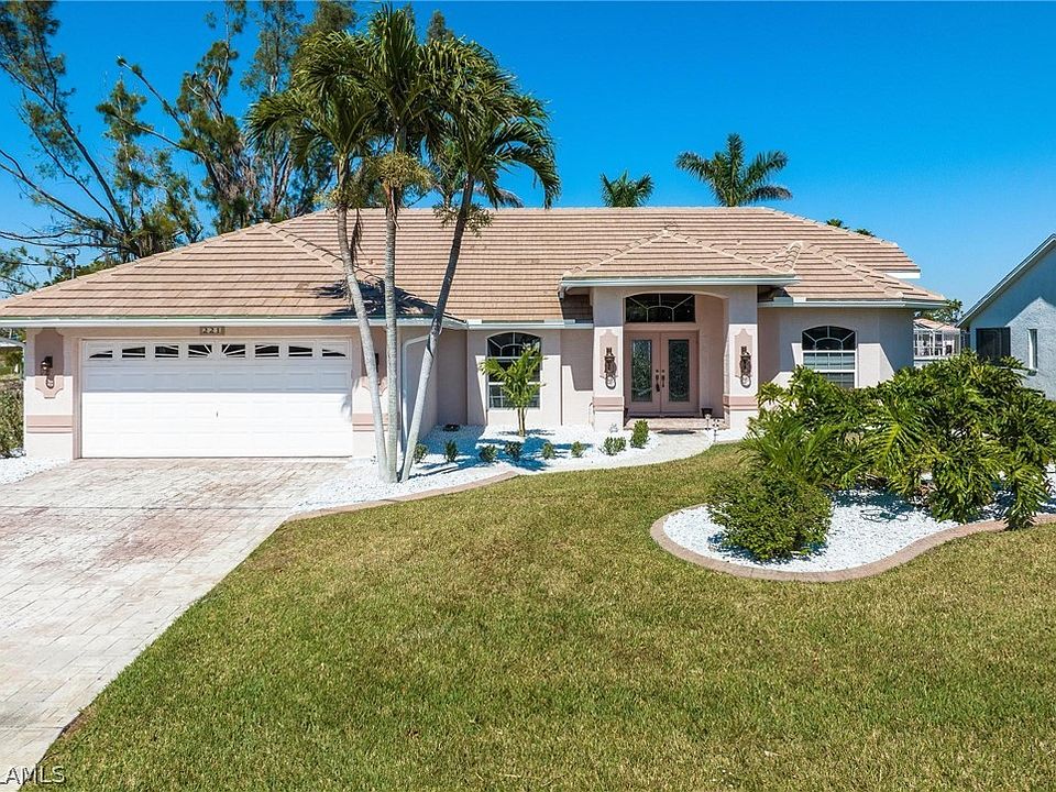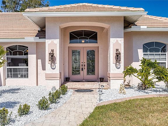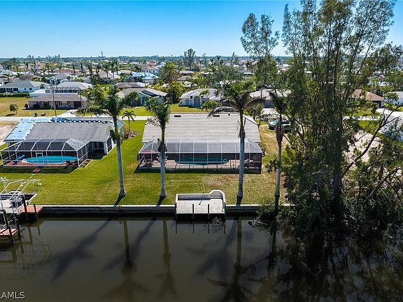Beautiful Gulf Access Pool Home in a Desirable Central Cape Coral Location! This lovely home offers great curb appeal with an attractive flat tile roof, tropical landscaping & beautiful glass double entry doors. You enter into the foyer & a welcoming living room with fantastic views of the tranquil canal. The formal dining room is perfect for family meals & the kitchen features white cabinetry, a pantry & plenty of counter space for meal prep. Enjoy your morning coffee in the eat-in kitchen with a great view of the pool area & canal. The private master bedroom features French doors to the lanai, his & her closets & an en suite bathroom with dual sinks, a large shower & a soaker tub for relaxing. The 2nd bedroom offers 2 closets & an adorable window seat & the 3rd bedroom has a convenient murphy bed, desk & lots of storage space. There are 2 additional bathrooms & 1 serves as a pool bath. Entertain guests on the large screened lanai & cool off in the sparkling pool. Enjoy a day of boating or fish from the dock in your backyard. Roof was replaced in 6/2022, pool was resurfaced in summer of 2022 & water heater was replaced. Call today for your personal tour!