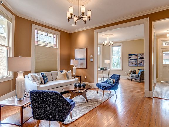 Artfully restored Victorian filled with character, charm, exquisite detail, period finishes. Nestled on a quiet dead-end street in popular John's Landing. High ceilings, hardwoods, newer plumbing, wiring, electric, foundation. Sunrise views over Mt.Hood from spacious master, Chef's kitchen, private courtyard w/ garden. High-end finished legal ADU / income opportunity. Walk, bike, bus to parks, river, South Waterfront, OHSU.