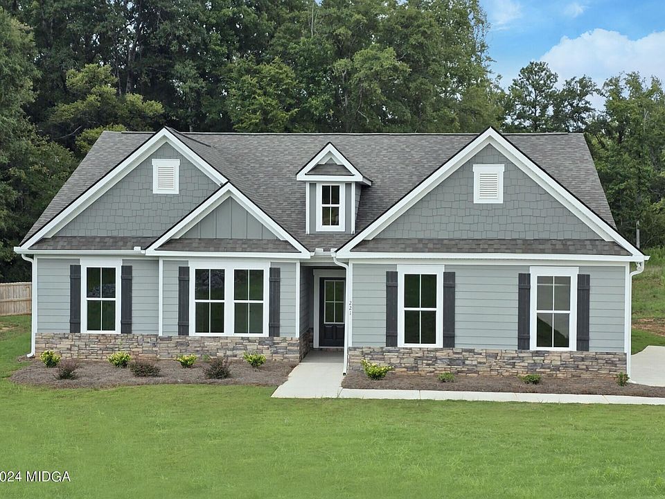 The Maplewood Plan built by My Home Communities. This RANCH STYLE Home sits on an Acre Lot with Farmhouse exteriors and a Side Car Garage Entry. Interiors include Spacious Kitchen overlooking the Family Room with a Breakfast/Dining Room adjacent to the kitchen. The kitchen has an abundance amount of cabinet space and a pantry closet. Granite countertops are in the kitchen and all bathrooms. LVP flooring in the main level common areas. The primary suite includes a separate tub/shower, double vanity, and large walk-in closet. Additional features include a mud bench, rear exterior covered porch, subway tile back splash in kitchen and garage door opener with remote. Located in North Macon, GA with Great Schools. Quick Move-In! Community is 100% USDA Eligible. Secondary Photos are stock photos. Matterport is not of actual house but of the same floor plan. Total Square Footage is approximate and includes main and upper level. Ask about the HOMESITE SPECIFIC incentive for this home of 3.99% rate promo and $3,000 in closing costs with full priced offers using Seller's preferred lender with binding contract by 09/30/2024.