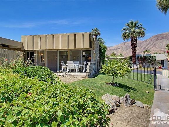 Sleek, Smart and Sophisticated describes this 2 bedroom/2 bathroom classic mid century modern home designed by renown architect, William Krisel. Enjoy an open floor plan with high wood beam ceilings, dramatic block walls with fantastic pool and mountain views from the great room! Tastefully updated, the kitchen offers granite counters, tiled back splash, breakfast bar and custom lighting. The master en suite provides a serene intimate setting with your own private patio, rich with southern mountain views. This property is complete with a full size laundry room making life easy! Best location!!! Yeeesss, you can WALK down the street to shopping, dining and excitement on fabulous El Paseo! Priced to sell. Start enjoying Sandpiper, an upscale vibrant neighborhood that is sure to please!