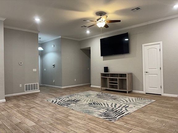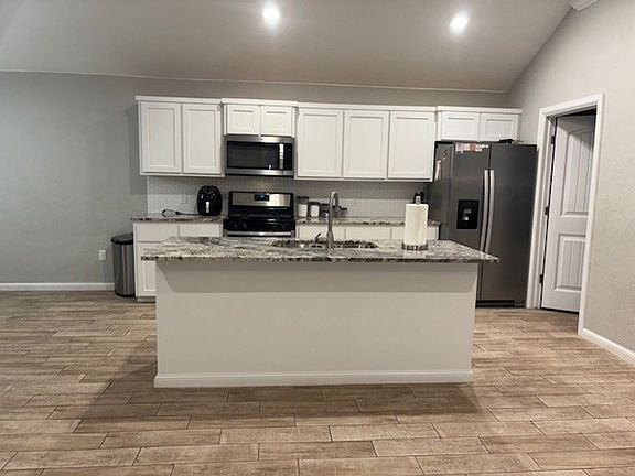 4 bedrooms, 2 1/2 baths, large living room with hard surface flooring, beautiful kitchen with granite countertops, stainless steel appliances (refrigerator, gas stove, above hood microwave, dishwasher), lots of cabinet space to include a walk-in pantry, separate dining area, 8 ft ceilings, Tankless water heater, Separate laundry room, All bedrooms have carpet, Primary suite is very spacious with a sitting area, large walk-in shower, walk-in closet, secondary bedrooms are great sizes, covered patio, fenced yard, 2 car garage. Central Heat/Air, ceiling fans. ONE DOG UNDER 25 LBS WITH OWNER APPROVAL, YOU MUST PRE-QUALIFY BEFORE WE WILL SCHEDULE A VIEWING APPOINTMENT.