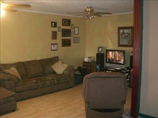Your new home is within walking distance to school. Featuring 3 bedrooms with spacious closets. Master Bedrooms includes 1/2 Bath. Newly remodeled main bath with hardwood floor. Two living areas with open floor plan and neutral colors. Separate dining room with french doors leading to backyard. Separate utility room with washer and dryer connections. Your new home also has 4 leveled acres, 2 metal barns, a storage shed, fenced in backyard, and a covered carport. Welcome Home!