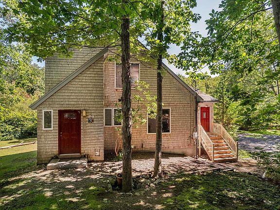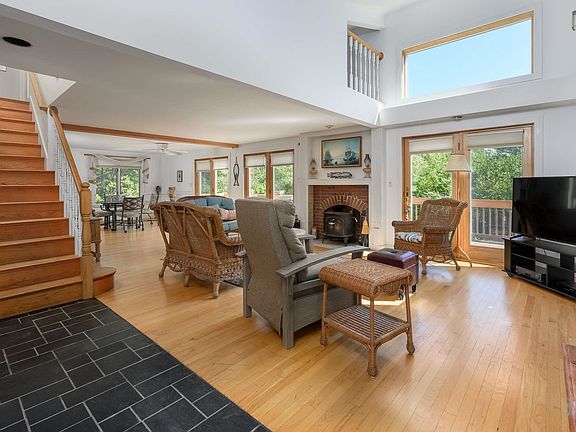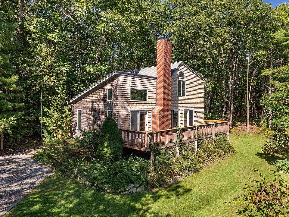 Sat, 9/23 open house is cancelled. With a short walk to Passaconaway Beach, in sought after Cape Neddick, this contemporary style home is the perfect year-round residence or seaside getaway. Set on 3/4 of an acre, sited among the trees away from the picturesque Shore Road and across the street from Lake Caroline, experience the ultimate privacy with a spacious backyard to host your visiting guests. Step into the home's light-filled, open concept living and dining space with hardwood flooring, vaulted ceilings, a wood burning fireplace with stove insert and access from multiple sliding glass doors to the rear deck that spans the entire length of the home. Adjacent to the dining room is the home's L shaped kitchen as well as the first floor bedroom or in-home office space with a full bath. The second level offers the primary bedroom suite, with a walk in closet, and an additional bedroom with its own bath. Store all of your beach gear, other tools and equipment in the spacious detached two-car garage or in the full, unfinished basement. After a fun filled day taking in the coastline come home to relax on the back deck with family and friends while enjoying the sounds of the Atlantic Ocean. Whether you want to bike up to Perkins Cove in Ogunquit, shop at the Kittery Outlets, or explore Portsmouth, NH; 221 Shore Road is ideally located to do it all, 45 minutes from Portland and just over 1 hour to Boston.