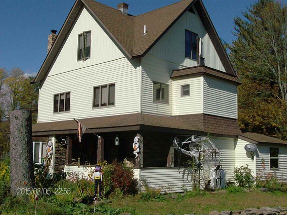 Remodeled 3 Story farmhouse in very good condition. Tastefully remodeled with granite counters, Stainless steel appliances, Blue stone floors, Fireplace, 3rd story Master Suite and many unique features and original woodwork and built-ins and more. New windows/screens, 6 year old furnace, over sized 5 car garage, small stream running through fields across street behind the great solid- barn build with pegs not nails. 6 Horse stalls, tack room, hay loft & more. Combination of open fields and woods with trails. Great B&B location. Ideal for horses, goats, sheep... Open fields, pasture and woods...