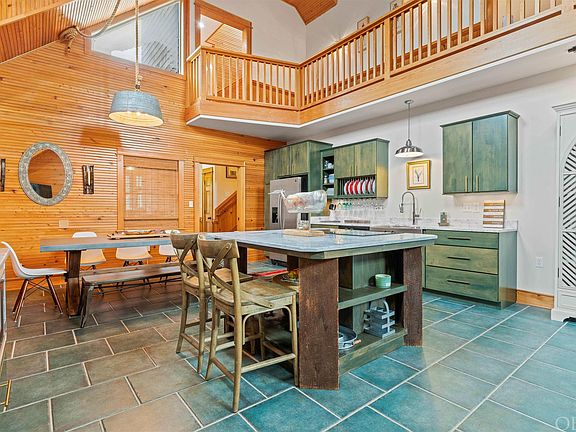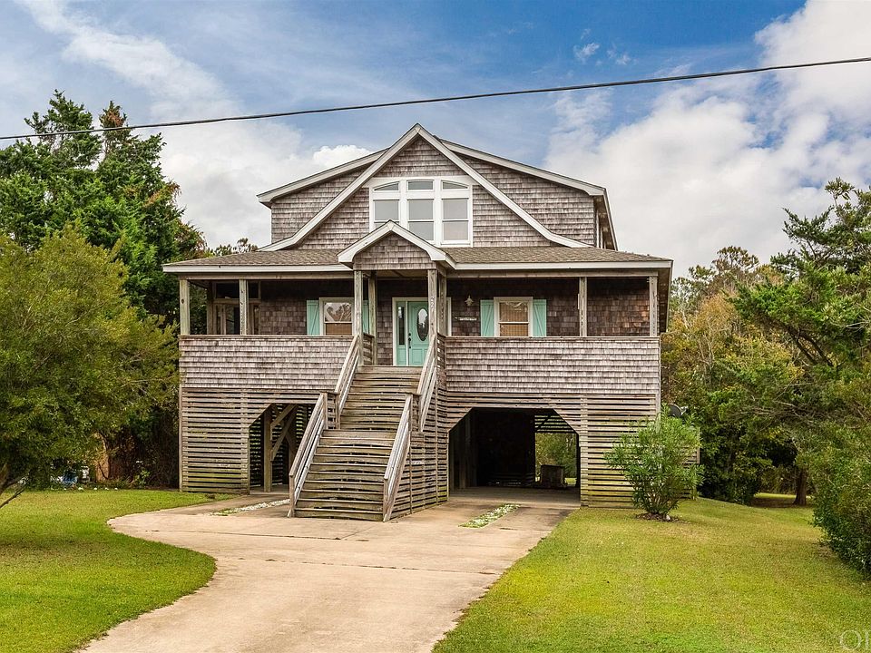 Here is a rare opportunity to own an Old Nags Head style cottage with a coastal, eclectic flare. As soon as you enter this unique cottage, your eyes are drawn to the bright, natural light pouring through the large windows above. You'll also marvel at the authentic pine beadboard dressing the cathedral ceiling and all the walls. The entire great room is so spacious, yet so cozy, and is embellished with fabulous ceramic tile floor. You'll just love the gorgeous, modern kitchen which includes granite countertops, a stainless steel farmhouse sink, open shelving, stainless steel appliances and a large island. The great room is large enough for everyone in your group to relax together or you can sneak out on the wrap-around, covered porch to enjoy some quiet time and the fresh, salty air. If you like to eat outdoors, this home has an oversized screened-in porch that will fit plenty of people. There are also plenty of sundecks and an outside shower. A roomy master bedroom with an en-suite is on the same floor, as well as, a full bathroom off the great room, a laundry closet and a second bedroom. The second floor, where views of the ocean and the sound can be seen, has the third and fourth bedrooms, and a full bathroom. All bedrooms boast spectacular hardwood floors. Head up to the third floor, or the captain's watch, and get phenomenal views of the ocean, the sound and the incredible, expansive Jockey's Ridge State Park. Let's not forget there is plenty of parking underneath for multiple cars, and your boat, and there is even a dry entry. What's more, behind this home are beautiful live oaks, providing plenty of serenity and tranquility. Take a wonderful, short stroll just down the street and spend the day at the Soundside Beach swimming in the water or kayaking or paddle boarding. In the early evenings, head down to catch the famous Outer Banks sunsets. In the morning, hop over to the ocean for a breathtaking sunrise and spend a fun day on the beach. Plenty of fantastic restaurants and shops are close by. Don't miss this opportunity to own this remarkable home meticulously taken care of in a highly desirable neighborhood in Nags Head. This one won't last long. Call today to see!