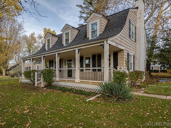 Welcome to 221 Spring St in historic Geneva! This beautiful Dutch Colonial exudes all the charm, character and true craftsmanship of yesteryear when it was built facing west toward our iconic Fox River ~ mere blocks from Island Park and the heart of downtown Geneva! Imagine all the sunsets you can enjoy from the lovely, covered porch with new cedar decking and composite railings. Family and friends have room to gather and play in the large, fenced back yard ~ or to chill on the recently-refreshed, enclosed back porch. Inside the home, natural wood floors and ceilings add warmth and durable value, while original built-in cabinets, shelves and trim are highlighted in crisp, modern white. The updated Kitchen boasts custom maple cabinetry with Corian counters, tile floor, and all stainless appliances. Fresh paint adorns the Family Room/Office and secondary bedrooms. The upstairs family bath sports an update, too, with granite top, custom cabinets, tiled floor & shower, and fresh paint! If you need downtime, enjoy a relaxing soak in the private, 1st-floor spa bath. All bedrooms have hardwood floors and ceiling fan/lights ~ even the tandem play room! Access to the attached two-car garage is through the back porch. Can you find the laundry chute from the second floor down to the basement?! Big ticket/non-flashy upgrades include: New sewer line from the street to the house, with basement floor refresh; electric panel; heat lamp in upstairs bath and venting to outside. Geneva is all about history and lifestyle - love your life and make your own history in this gem of a home!