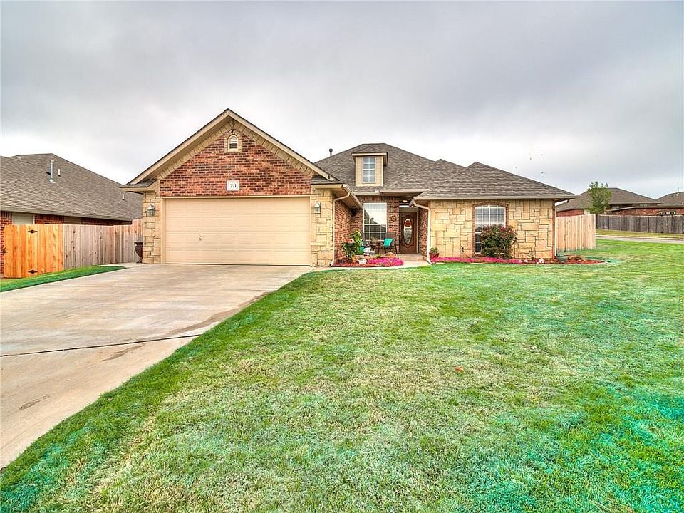 This awesome home in Choctaw Schools features a corner lot and a flexible floorplan. Updated kitchen with granite counter tops, and custom built oak cabinets will impress any buyer. The formal dining area can also function as a study or play area. The master bedroom includes a master suite with jetted tub, large closet and double sinks. The backyard is huge featuring a covered patio with a custom installed patio shade and a storage shed. The front and side yard includes an in ground sprinkler system. The neighborhood also includes a community pool for the new owner to enjoy!