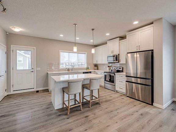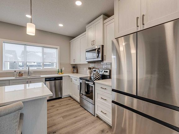 Welcome to this bright and spacious end-unit townhome located in the desirable community of Sunset Ridge. Enjoy the added privacy of an end unit, abundant natural light, and a rare 3 car tandem garage perfect for vehicles, storage, or a home gym. The open concept main living area features stainless steel appliances, and a functional layout ideal for both everyday living and entertaining. Step outside to your fully fenced yard, with mature trees creating a perfect retreat for relaxing, gardening or hosting guests. Ideally situated within walking distance to schools, playgrounds and nearby shops, this home offers exceptional convenience for families, professionals and investors alike. There are No condo fees!
