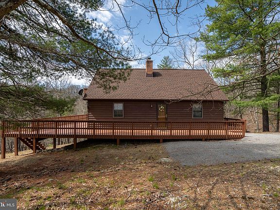 12.51 Acres of WV Paradise! South East Mountain Views! Cacapon River Access just down the lane! New Hot Tub!! This country Chalet has it all, 3 bedrooms, 2 full baths, wood burning stove for those cool nights. Wrap around porch with covered deck, Recent upgrades included vinyl plank flooring, exterior doors. A full unfinished basement has a laundry and with the windows and doors in place this could be easily finished into a game / rec room. You'll find privacy with easy access making this an excellent weekend retreat or year round home. High speed internet recently added. The River Ridge community has well kept roads, security gates and an outstanding river lot with bathhouse and kayak storage avalible. A perfect choice for the outdoor enthusiast, make your appointment today!