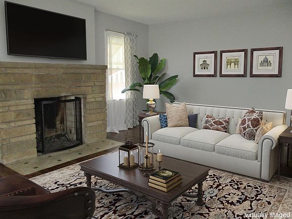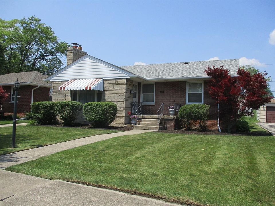 You found it! This outstanding brick and stone ranch features 3-4 bedrooms, two baths, heatilator fireplace, freshly finished HARDWOOD floors on the main level, formal dining room, partially finished basement, plus 2 1/2 car concrete block garage! Freshly painted main level boasts updated kitchen with appliances, sitting room off dining room, full bath has jetted tub, Kohler sink, ceramic floor and walls, and white trim throughout. Lower level offers Rec Room, TV room with closets, which could be 4th bedroom, kitchenette with white cabinets, quartz countertops, sink, microwave and dorm fridge to store beverages, AND a 3/4 bath with oversized shower! All this with additional area for storage. Seller had 2 QUEEN SIZED BEDS in 2 of the upstairs BEDROOMS! Taxes will be lower once homestead exemption is filed. Schedule your viewing today!
