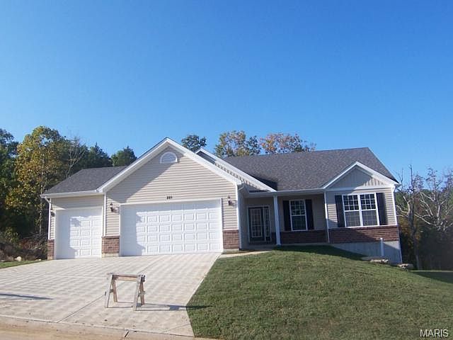 Popular ranch plan with approx. 1600 sq. ft! USDA financing available for qualified buyers! Offers 9' ceilings, Vaults, Luxury Master Bath with Sep Tub & Shower! Oversized, adult height Vanity! Vaulted Master has double Bay Window & Walk-in Closet! Wood burning Brick Fireplace with Raised Hearth and Stained Mantle! Alternate Kitchen with Butterfly island and raised Serving Bar, Step-in Pantry and bright Bay Window! Step out to a Covered Deck overlooking a level, treed back yard! Double coat closet in Laundry! Oversized 3 car garage with 2 bays 25 deep! 90+ % Efficiency Gas furnace, 50 gal. electric Water heater. Charter High Speed Internet is available! Luxury homes at affordable prices. Don't wait! Just 3 wooded home sites remain. All back to wooded common ground.
