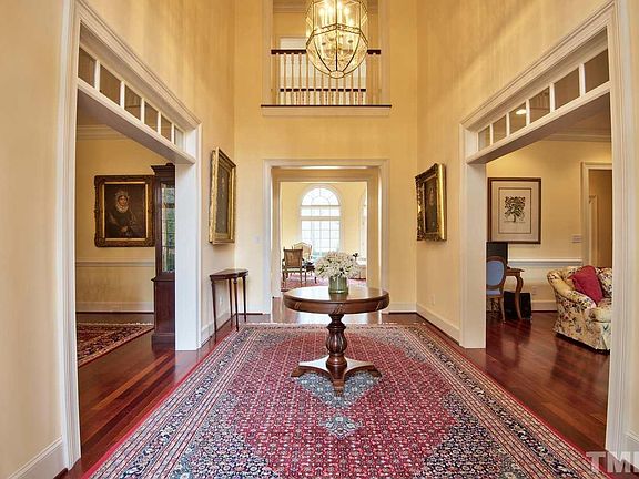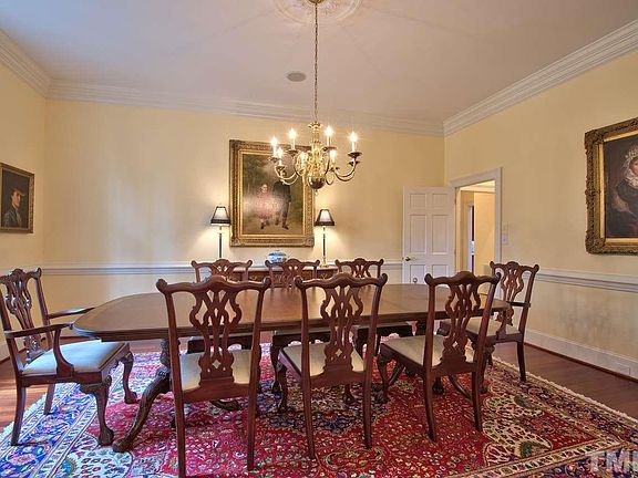 Treyburn Country Club estate home-ideal location close to Duke Medical Center, Research Triangle Park. Custom Georgian Style estate home on 2nd green and 3rd fairway of Treyburn's Tom Fazio golf course. Beautiful views surround on all sides. Impressive entry, large and delightful living spaces. Brazilian cherry hardwood floors, high ceilings, beautiful detailing in woodwork and cabinetry. Viking stove, granite counter top, and sub-zero fridge. Luxurious master suite with his and her closets and bathroom