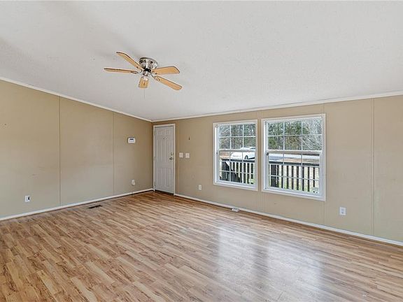 Enjoy the quiet of this home that's set out in the country on 1.54 acres! Sip coffee from your back porch in the morning as you gaze out over the beautiful grassy fields. Attractive laminate floors throughout and vaulted ceilings welcome you into this spacious 2,128 sq ft home! Cozy up in front of the fireplace as a family on those crisp nights! Cooking is a breeze in the eat-in kitchen that opens nicely into the large family room! The kitchen offers an abundance of cabinet and countertop space and it offers recessed lighting and access to the backyard! The master suite is extremely generous in size leaving room for a sitting space or maybe a home office area. The master bath features dual vanities and a jetted tub. The other bedrooms are also spacious and offer ceiling fans and vaulted ceilings! This large backyard offers plenty of space for the handyman and his projects, the kids to run and play, or maybe you'd enjoy some goats or chickens! The possibilities are endless! Come see your new home today!