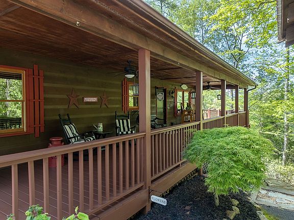SPACIOUS FURNISHED CABIN WITH INCREDIBLE OUTDOOR LIVING IN DESIRABLE TARHEEL AREA OF MUPRHY. Welcome to your dream mountain getaway! This rustic cabin offers an open floor plan with gorgeous tongue-and-groove ceilings, a cozy stone fireplace, and seamless flow between the kitchen, dining, and living areas — perfect for everyday living and entertaining.?The main level features 3 bedrooms and 2 baths, including a primary suite that opens directly onto the deck, creating an easy indoor-outdoor lifestyle. The fully finished lower level is ideal for an in-law suite with a huge bedroom, luxurious bath, massive rec room with fireplace and a wet bar — a fantastic setup for guests or family gatherings. Step outside to truly appreciate the expansive outdoor living spaces! Relax or entertain on the 10' wide covered porch, enjoy the open deck, or unwind on the lower deck with a private hot tub area. Gather around the separate fire pit area for cozy nights under the stars. A large paved driveway provides plenty of parking, along with a beautiful timber-framed carport. The 12x32 outbuilding is perfect as a workshop or storing all your mountain adventure toys. BONUS: Seller is willing to offer owner financing at an incredible interest rate of 5% — a rare opportunity! All of this with easy, all-paved access — just minutes to downtown Murphy, Lake Hiwassee, shopping, and dining!
