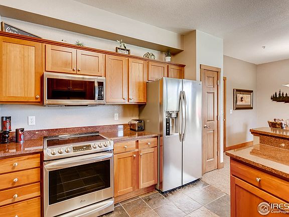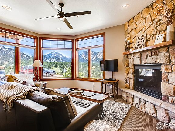 Enjoy unobstructed views of Lumpy Ridge & historic MacGregor Ranch and let the wildlife come to you. Relax in your liv. rm or on the porch of this exquisite furnished 1 bed/1 bath condo. Updated in 2019 w/new stainless appliances, furnishings & fresh paint. The liv rm is updated w/Berber carpet & boasts a beautiful stone gas log fireplace w/the focal point being the huge view windows & coveted view. It's one of only a few w/an attached heated garage. Great rental hist to help w/mortgage.