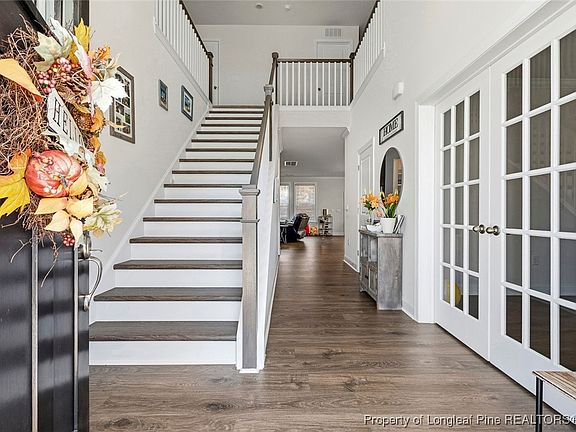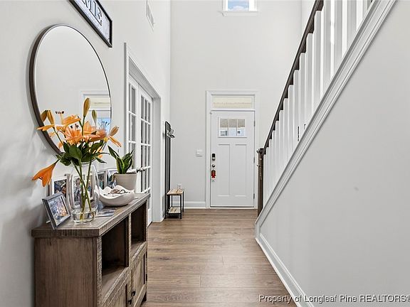 This spacious 2-story home boasts 3,133 square ft. of luxurious living space. Located in The Manor of Galvins Ridge located in north Ssnford. This almost new construction, 4 bedrooms, 3 full bathrooms, offers plenty of room to spread out and grow! The elegant entrance foyer will greet you with the open-concept design. The gourmet kitchen features high-end appliances, quartz countertops, and a large island - perfect for entertaining guests or preparing large meals! The first-floor bedroom provides flexibility for a guest room, home office, or playroom. The adjacent flex space can be customized to fit your needs. Upstairs, the spacious loft can offer a game room or home theater. The master suite is a true retreat, complete with a spa-like bathroom and walk-in closet. Step outside to savor the views from the covered patio and fenced in back yard. Planned amenities included pool, clubhouse, outdoor courts, miles of walking trails, dog parks, a fishing pond, and more! It is conveniently located off HWY 1 within 10 minutes, 15 minutes to HWY 540 and of major area employers such as Central Carolina Enterprise Park, Triangle Innovation Point, Pfizer, Caterpillar, Astella, and Vinfast. Our community is 30 minutes to Downtown Raleigh, 35 minutes from Research Triangle Park, and 45 minutes to Fort Liberty!!One-year builder's warranty and 10-year structural warranty. Your new home also includes our smart home technology package! The Smart Home is equipped with technology that includes the following: Wave programmable thermostat, Z-Wave door lock, a Z-Wave wireless switch, a touchscreen Smart Home control panel, an automation platform from Alarm.; video doorbell.