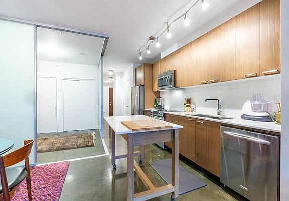 Bright, Open, 2 Bed 1 Bath Furnished Home @ V6A. This Amazing Home Offers 813 S/F of Open, South Facing Living Space with Two South Facing Balconies. Other Insuite Features Include Concreate Floors, Chef Inspired Kitchen with Stainless Steel Appliances Including a Dishwasher and a Large Moveable Island, Stone Counter Tops, and Tons of Storage, Floor to Ceiling Windows for Tons of Natural Light, A Huge Bathroom with a Large Soaker Tub and Separate Walk in Shower, Insuite Laundry, 2 Large Bedrooms and One Secured Underground Parking Stall. Building Features Include a Concierge, Fitness Center and Outdoor Yoga Area. Other Features Include an Amazing Location Close to Restaurants, and a short walk to Rogers arena, BC Place, and False Creek. This Amazing Home is Available Immediately on a One Year Lease. Sorry No Smoking. The tenant is responsible for Hydro, Cable, and Internet. Gas, Water, Furnishing, Parking and Storage are all included in the rent.