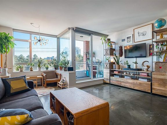 Contemporary 2 bed in Strathcona. Open plan featuring high ceilings, large windows, polished concrete floors, and updated decor make this unit feel like home. Kitchen is equipped with stainless steel appliances, quartz countertops, & a large kitchen island perfect for cooking & entertaining. Spacious living-room with access to a south-facing patio & lots of natural light. Master bedroom is spacious & includes a walk-through closet & an ensuite. 2nd bedroom comes with a custom-built murphy bed and shelving unit. Centrally located, walking distance to Olympic Village, Seawall, Gastown, & Downtown. Steps to Matchstick cafe, restaurants & charming Strathcona neighborhood. The building offers a concierge service, gym and bike room. OPEN HOUSE: Sat, Aug 8th 2-3pm