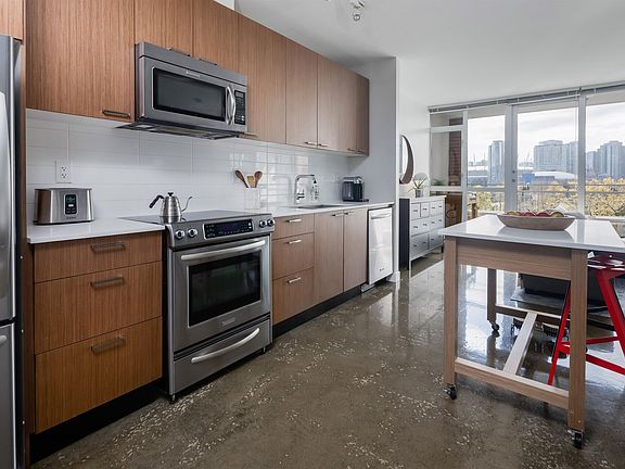 Modern Strathcona. Building V6A is city loft-style concrete build with expansive views towards False Creek and the Downtown Core. A sleek open-concept design features concrete floors, composite stone countertops, over height ceilings, ample in-suite storage, and an energy-efficient full sized appliance package. A sliding glass door system creates a flexible living space depending on your preferences. Strathcona has become a hotspot for new dining and cocktail options with some of the best new (and old) restaurants at your front door. Secure parking and storage included. Gym and concierge on site. Pets and rentals welcome. Great upside potential with new St. Pauls Hospital and Georgia Viaduct removal. Showings by appointment.