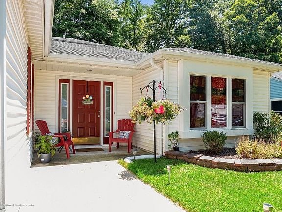 This Mystic Shores Beauty backs to the woods and majestically sits up on a hill with tremendous curb appeal and is in walking distance to the clubhouse! Gourmet kitchen with light bright white ceiling height cabinets, white subway tile back splash, stunning white and gray granite and soft close drawers complete with brushed nickel hardware! Stainless steel appliance package includes refrigerator, gas stove oven, microwave and dishwasher! Gorgeous hardwood look laminate ''life proof'' flooring throughout the entire house installed in 2018. Recently painted in neutral colors with open concept living room dining room combo and an all season sun room that opens onto the huge back patio for ultimate privacy. Large laundry room with new washer and dryer too! Direct entry garage! Move in ready!!