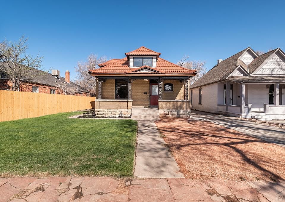 Updated classic brick Craftsman Bungalow with modern accents has the potential for owner occupancy AND rental income. Back section of house features bedroom, 1/2 bath with an extra room that has space and plumbing to add shower and a separate back entrance. Main living area has an open concept with high ceilings, a bay window and original leaded glass. New bathroom with stone top vanity featuring dual sinks and Kohler fixtures. All new flooring throughout including Bruce hardwood, Pergo waterproof laminate and tile. Get creative and use the attic and basement for over 1000 sf of additional space. The spacious attic was part of the original floor plan. Featuring great natural light, wide-open area, exposed red brick chimney and plumbing for bathroom, ready for you to create your dream space. Basement with high ceilings could easily be finished. Roof is stone coated metal with life expectancy of 40 to 70 years per manufacturer. Fresh interior and exterior paint including metallic paint trim, new light fixtures and ceiling fans. Kids and pets will enjoy the large fenced back yard that also provides privacy.