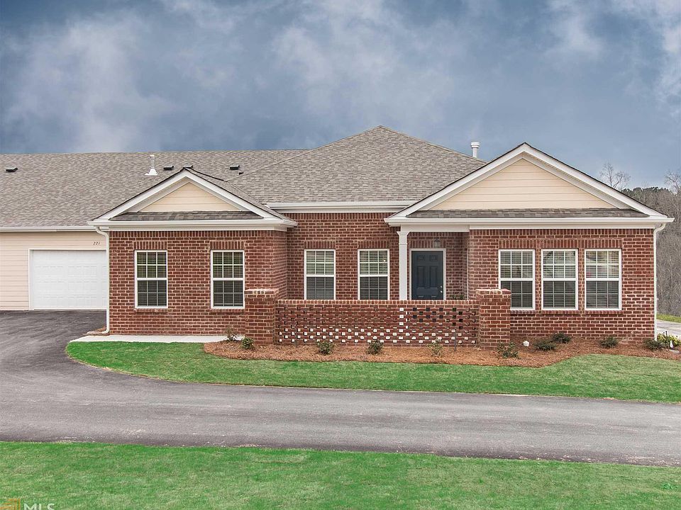 RANCH STYLE CONDO. Model Home. The Veranda Floorplan - This home features an inviting family room with gas log fireplace, a bright and open sunroom, hardwood floors in sunroom, family room, kitchen and dining area. Gourmet kitchen with 42" cabinets, granite countertops, glass tile backsplash, stainless steel appliances (gas cooktop, double ovens, microwave, and dishwasher). Two secondary bedrooms an additional bath and more. Master suite features a 10' trey ceiling with ceiling fan and walk-in closet. Master bath with tile showers w/bench, his and hers vanities with marble countertops. End unit with view to pool and clubhouse. 55+ ACTIVE ADULT COMMUNITY - Great for the move-down buyer. FINAL OPPORTUNITY. Hurry...This home won't last long.
