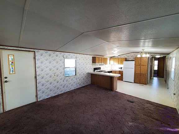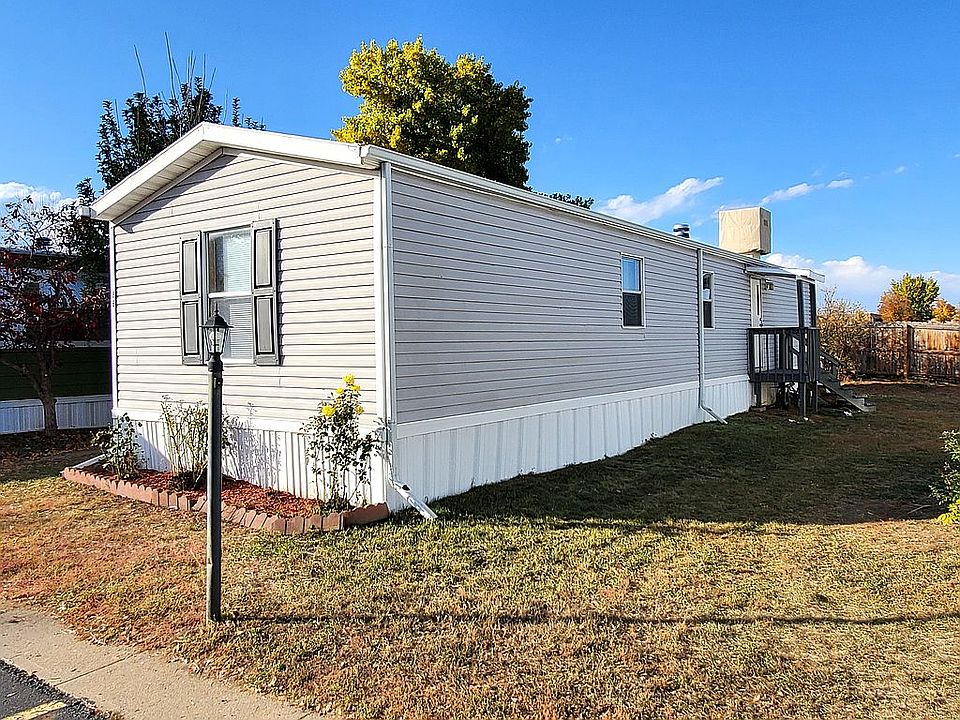 This cute and generously sized home can be your own perfect space. With an open floor plan, two great sized bedrooms, and wall to wall closets for all your storage needs! The exterior, shed, and decks of the home have been all freshly painted. There is tons of potential to put your personal touch in every room. The kitchen has loads of cabinet space for all your cooking needs, and an oversized pantry cabinet! Including area for breakfast bar seating. Spacious bathroom with a large shower tub combo and a wonderful vanity area with plenty of space for your powder room essentials. The home also offers a larger laundry room with washer & dryer included and shelving for additional storage. Step outside and sit under the large covered deck to enjoy the lovely yard with a mature apple tree and beautiful rose bushes. Central A/C, and a large storage shed included! The home sits in a quiet & well cared for retirement community for seniors. Residents must be 55+, financing available for qualified buyers. Call Rose today to schedule a showing! Esta linda y amplia casa puede ser tu propio espacio perfecto. ¡Con un plano abierto, dos recamaras de gran tamaño y armarios de pared a pared! El exterior, el cobertizo y las terrazas de la casa están recién pintados. Hay muchísimo potencial para poner tu toque personal. La cocina cuenta con una gran cantidad de espacio en gabinetes y una despensa de gran tamaño. Incluye área para asientos en la barra de desayuno. Amplio baño con una gran combinación de bañera y ducha. La casa también ofrece una sala de lavandería más grande con lavadora y secadora incluidas y estantes para almacenamiento adicional. Salga y siéntese bajo la gran terraza cubierta para disfrutar del hermoso patio con un manzano maduro y hermosos rosales. Amplio cobertizo de almacenaje incluido. La casa se encuentra en una comunidad de personas mayores tranquila y bien cuidada. Los residentes deben ser mayores de 55 años o mas, financiamiento disponible para compradores calificados. ¡Llame a Rose hoy para programar una visita!
