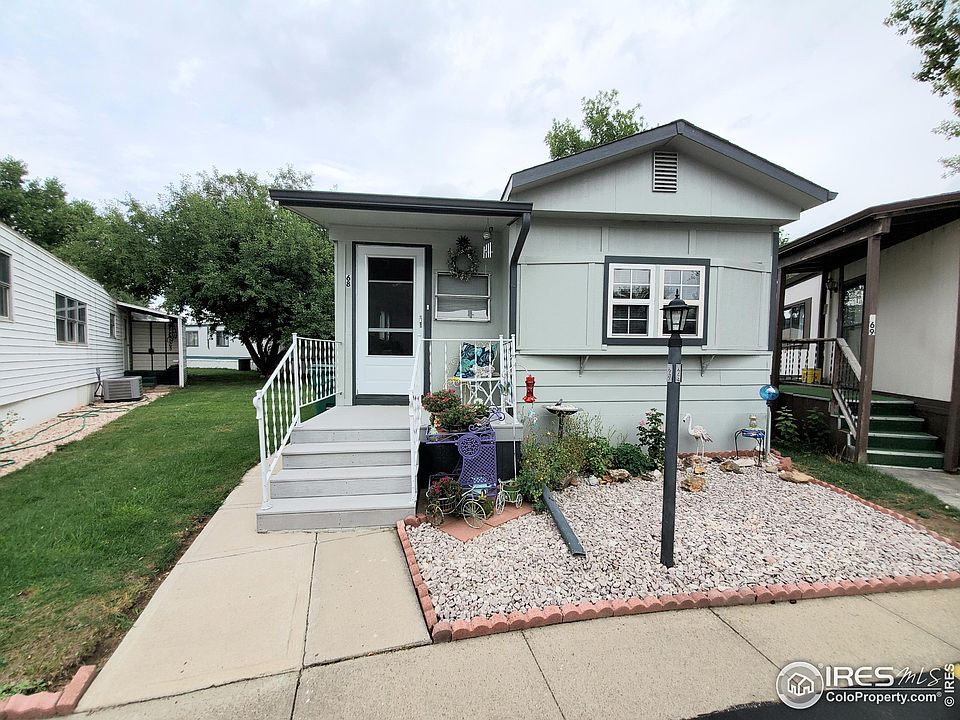 This excellent, move-in ready home is ready for you! The renovations and updates have all been done for you with newer exterior and interior paint, new laminate flooring throughout, new windows and more. First You are greeted with GORGEOUS established landscaping with many flowering perennials, then you enter thorough the covered entryway with composite deck. Pass through the awesome updated sunroom, that also makes a great mudroom with ample space for plants for furniture. Next the large and open living room is centrally located with the kitchen and formal dining room at the front of the home, overlooking the front yard. The beautifully updated bathroom has a nice sized vanity and tub/ shower combo, as well as nice tile flooring. Primary bedroom has a bump-out for additional space and large closet. Guest room also has large closet. All the appliances are included, even the washer, dryer, freezer and microwave. Outside you will find 2 storage sheds, a private flagstone patio and a huge crabapple tree, in addition to all the lovely flowers and greenery that encompass the perimeter of the entire home. Home has central AC to beat the summer heat and gas furnace. The community has a pool, playground and park, loads of fun for everyone! The perfect home is finally here, call listing agent today for additional info, for financing options or to schedule a showing.