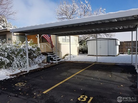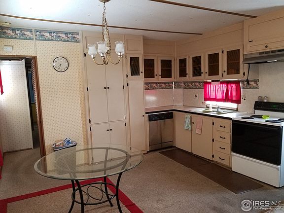 Cute 1971 home in Beautiful 55+ age restricted park in Loveland.2 car carport, large shed, Refrigerator, Washer, Dryer, Stove/Oven, Dishwasher all included. Sunny office as you enter home. Open living room into kitchen/dining area.Some furniture included in sale. Come see before this is gone!Small dogs ok with park approval. Buyer to verify sq.footage. Buyer to be approved in park prior to closing.
