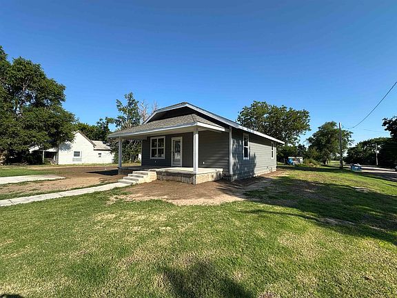 This cute bungalow in Bucklin has been completely renovated, located on a large corner double lot. Brand new roof, siding, and interior! Walk into an open concept living room, dining room and kitchen. This home offers 2 beds with large closets and 1 bath with many modern features. The kitchen has plenty of beautiful cabinets, granite countertops and brand-new Maytag stainless-steel appliances. This home has been stripped and made new from top to bottom. The large laundry room is conveniently located on the main. This property offers an unfinished partial basement for storage or storm shelter. You don’t want to miss the opportunity to make this house your home. This property has income guidelines. Call Maria Sanchez for your private showing today at 620-255- 0123!